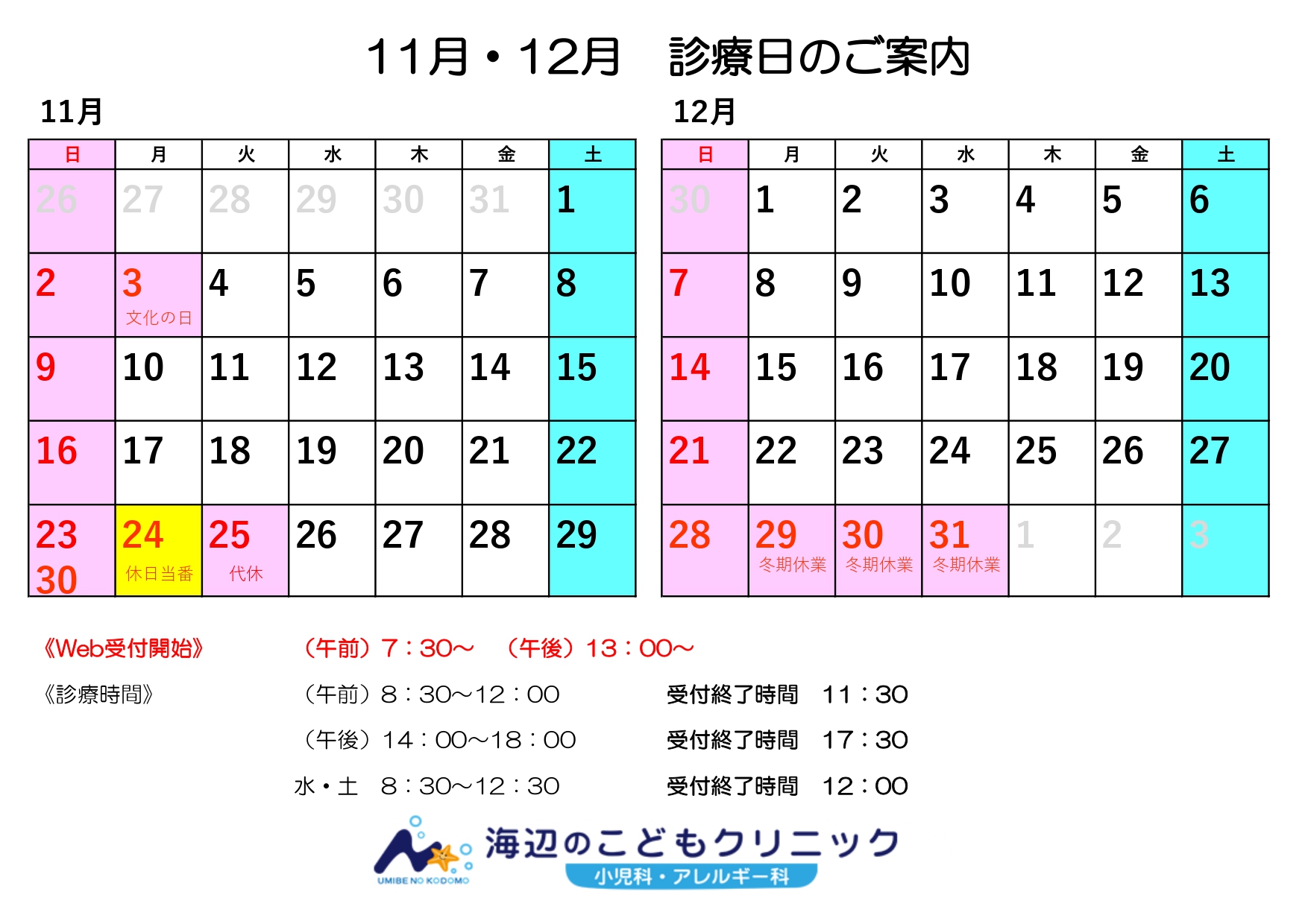 ・また、当日は大人の方の受診はお断りしております(内科休日当番医への受診をお勧めします)。